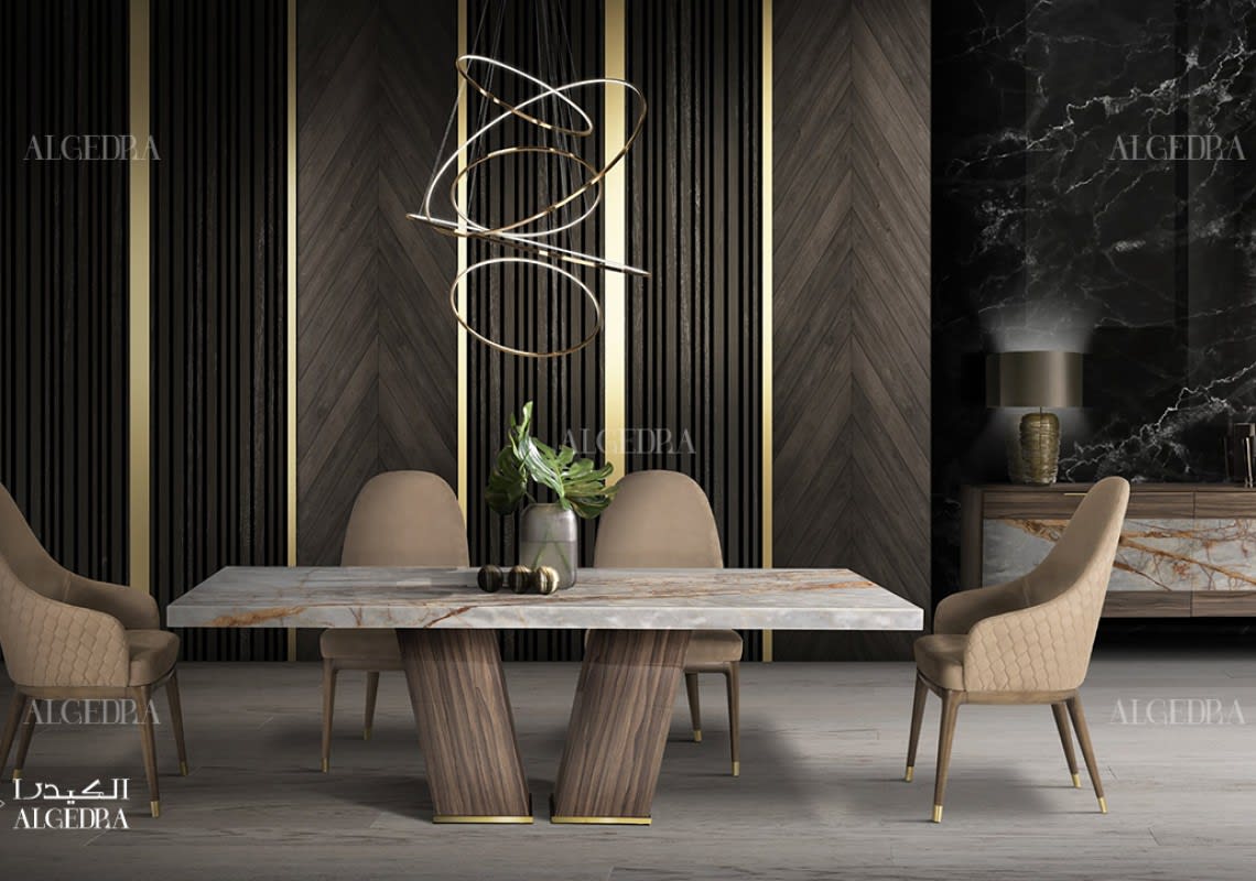 الرئيسية | مدونة | تصميم داخلي أنيق لغرفة الطعام المصنعة من طاولات السيراميك