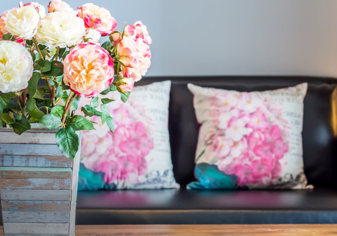 توزيع الوسائد ذات الألوان الزاهية والنقوش الحديثة والأحجام المختلفة في غرفة الجلوس على الكنبات والأرض أو في غرفة النوم يعتبر أمراً أساسياً في تجديد ديكور المنزل، يمكن تبديل الوسائد من وقت لآخر للحصول على مظهر متجدد دائماً بخطوات بسيطة وسريعة.
