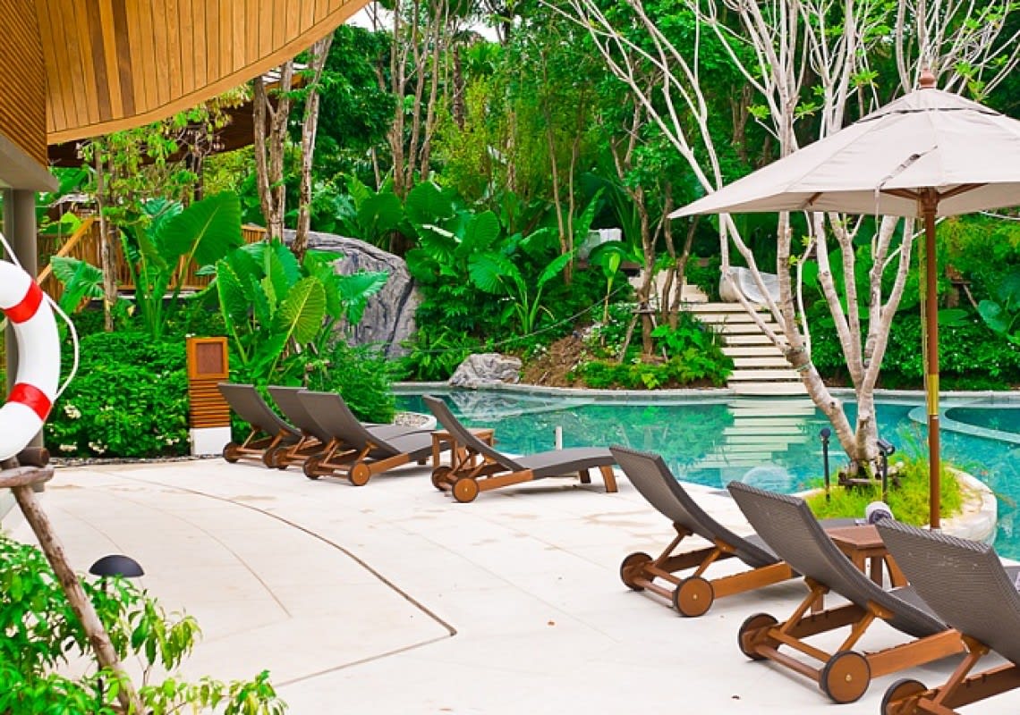 تستخدم المواد الطبيعية في ديكور المطبخ لتأكيد الأثر الاستوائي، في حين لا يعبر الكلام عن مدى روعة غرفة النوم بالنمط التروبيكال، فهذا النمط يهيئ لك لحظات سعيدة ودافئة للذكرى بألوانه الساحرة و حريره الناعم والظلال المتراقصة خلف مغاليق النوافذ القصبية.