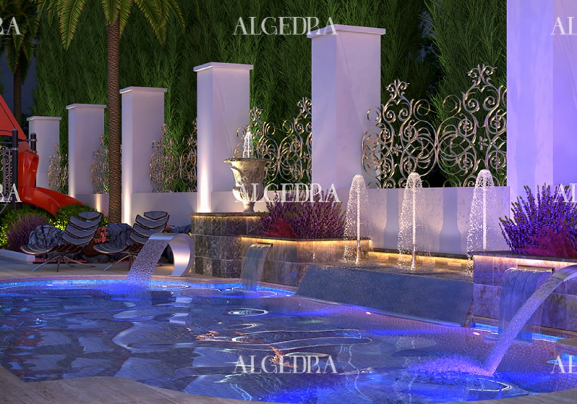 You can use some accessories such as fountains that make the swimming pool appear grandeur, or add waterfalls in the area surrounding the swimming pool for a beautiful appearance and the sound of the waterfall, which relaxes the nerves.