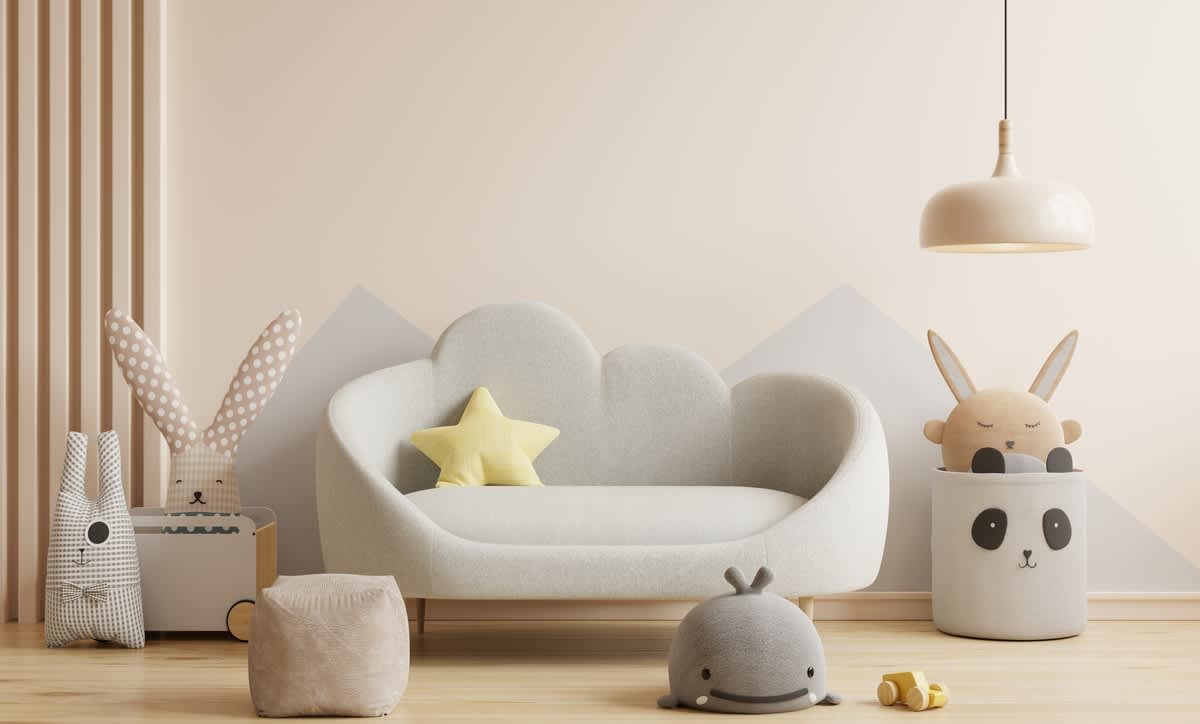 Use soft wall art, curtains, and soft toys. Avoid overwhelming patterns.