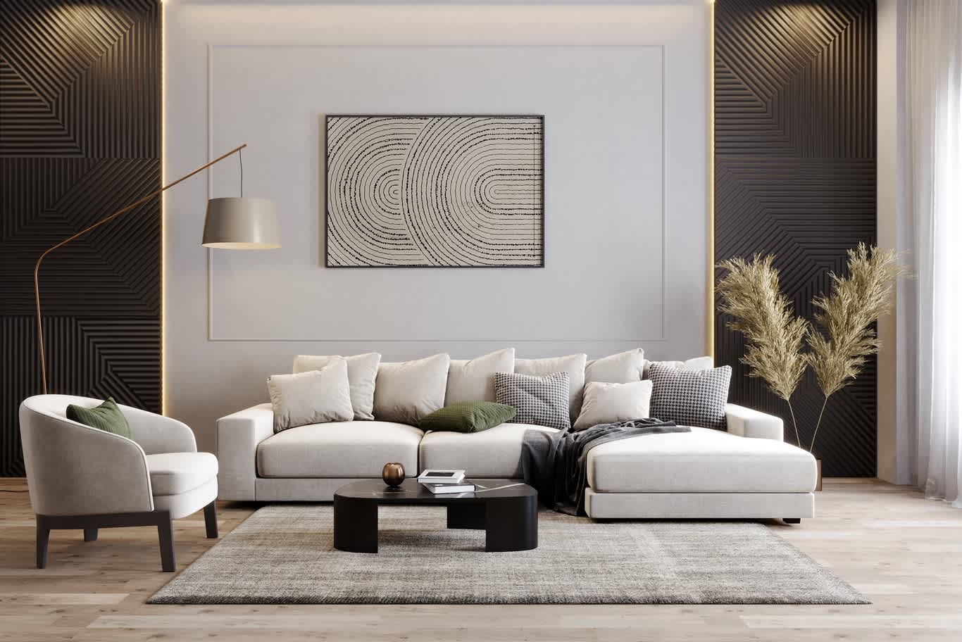 Keeps the design cohesive and removes reliance on exposed fixtures or ceiling spot clutter.