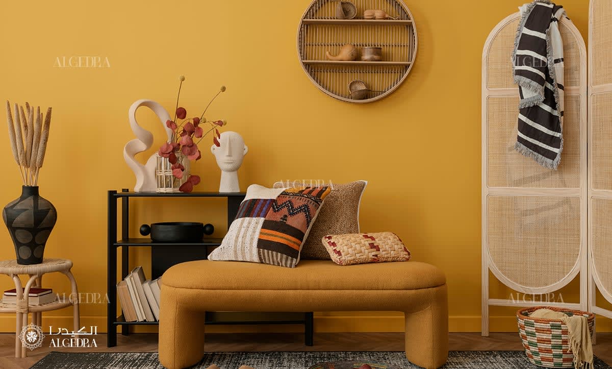 Fabrics with pronounced patterns and distinctive ornaments, used on furniture, cushions, and curtains, infuse a space with diverse colors and designs. These embellishments may be inspired by wildlife, geographical patterns, desert flora, or animal hides. Natural fabrics like cotton, linen, and silk are preferred for their ability to add softness and warmth. Curtains made from these materials provide the perfect finishing touch to the decor.