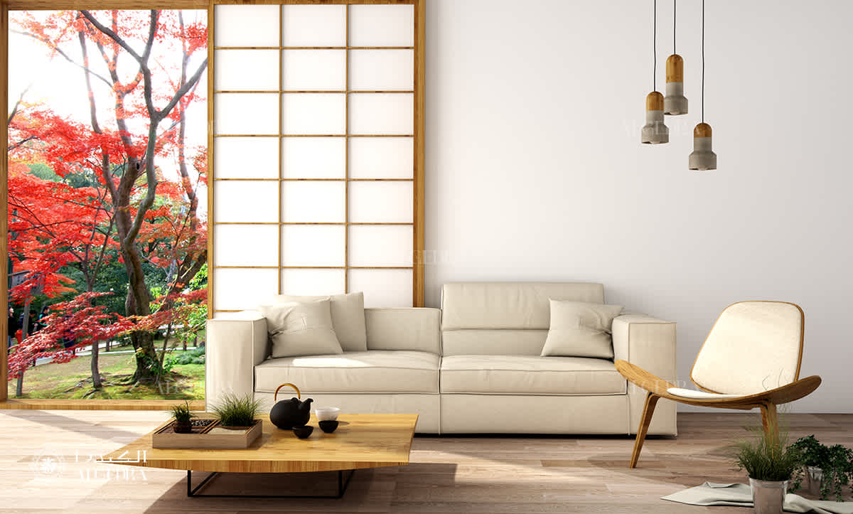 Furniture is created using organic materials close to the ground. Movable screen and sliding structures are frequently utilized. In addition to indirect lighting, there are cellars and storage areas. Red, black and gold colors are frequently availed and there is an entrance door.